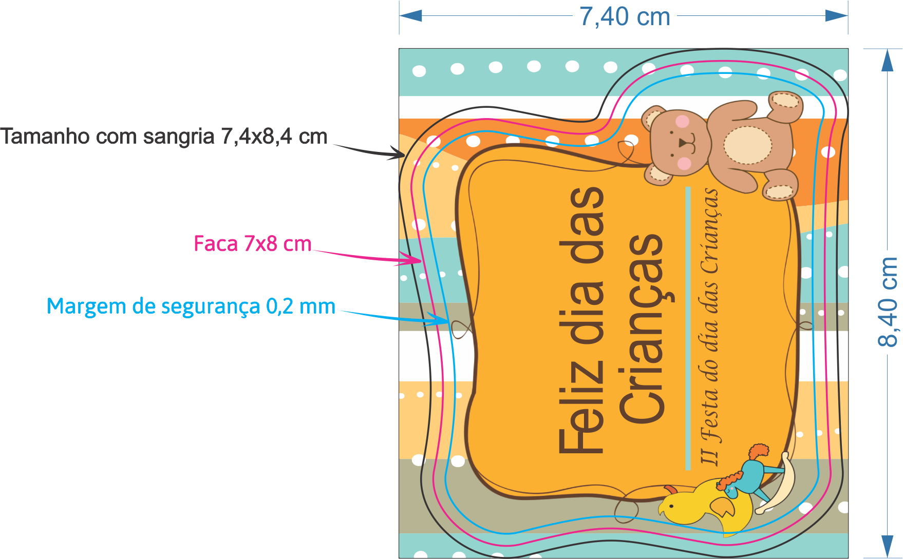 Margem de segurança: Para que informações e imagens que não tenham o propósito de serem cortadas, devemos utilizar uma área de segurança interna de 0,2 mm.