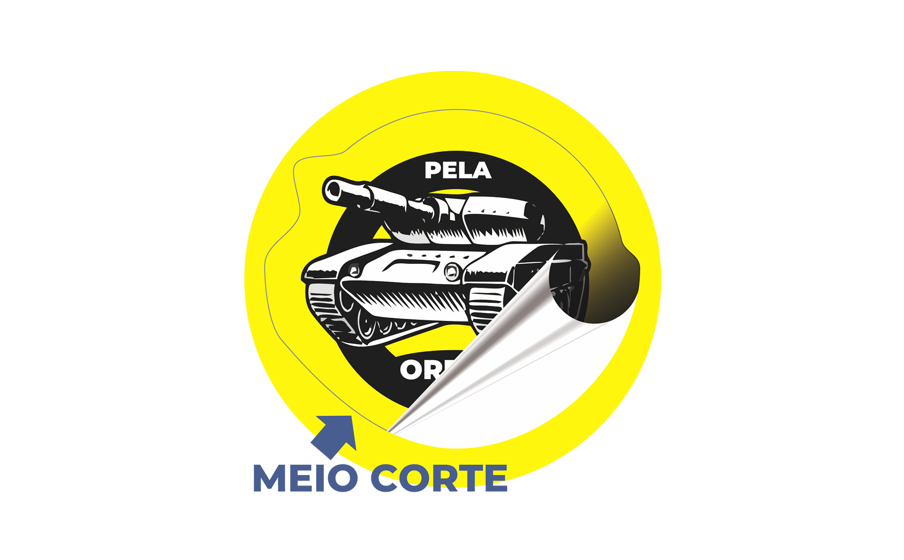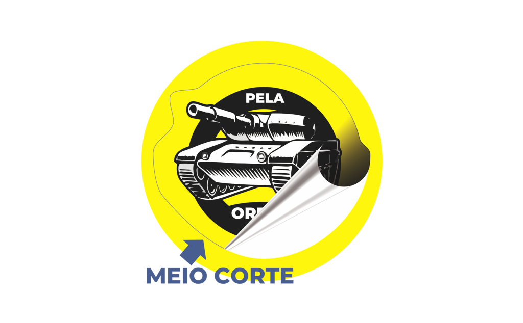 Este material tem como característica o “meio corte”. Que é um corte feito para que o adesivo possa ser destacado, como na imagem a seguir: