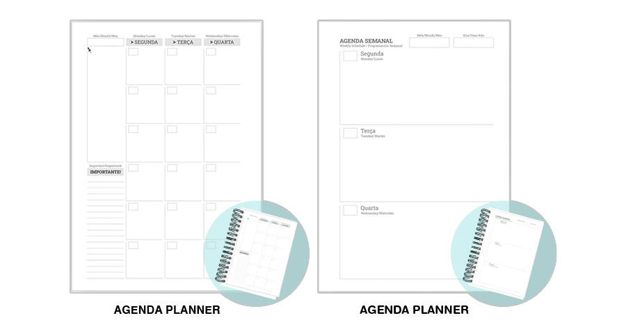 - Utilize sempre o gabarito para criar a arte gráfica das Agendas Personalizadas.