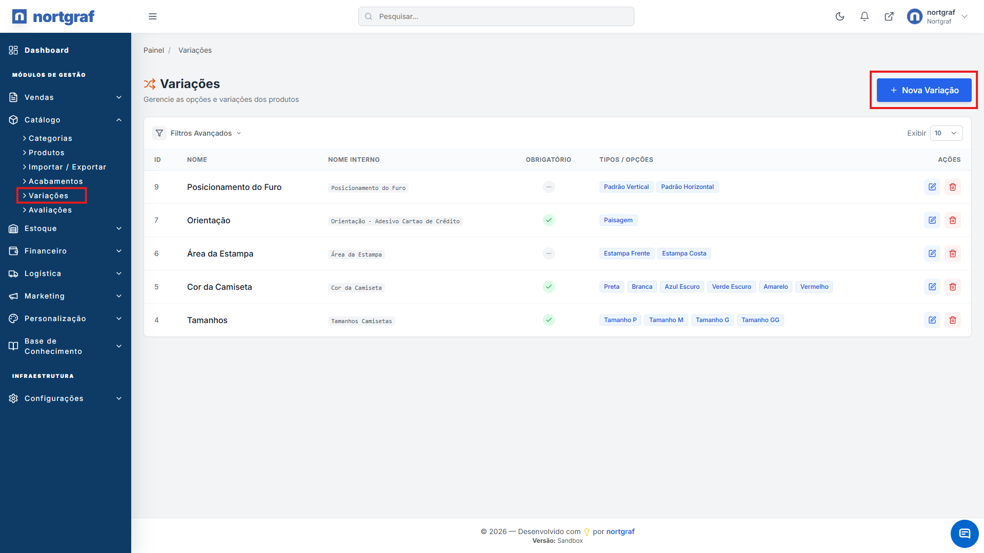 01Início: Acesse Produtos → Variações. Verifique se já existe algo similar antes de clicar em Novo.
