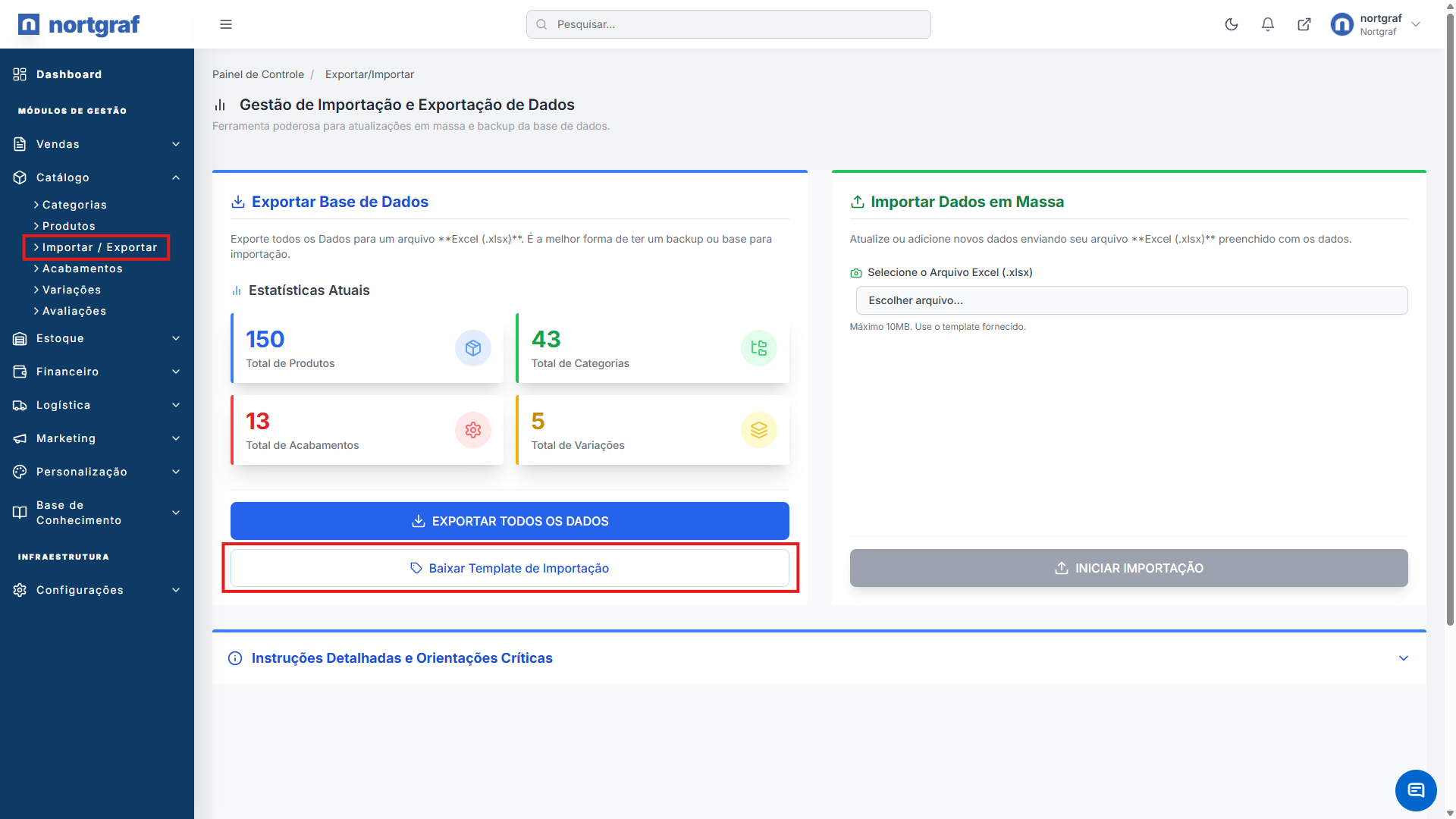02Preparação: Baixe o Template de Importação se for criar produtos do zero. Se for editar, use o arquivo exportado no passo anterior.