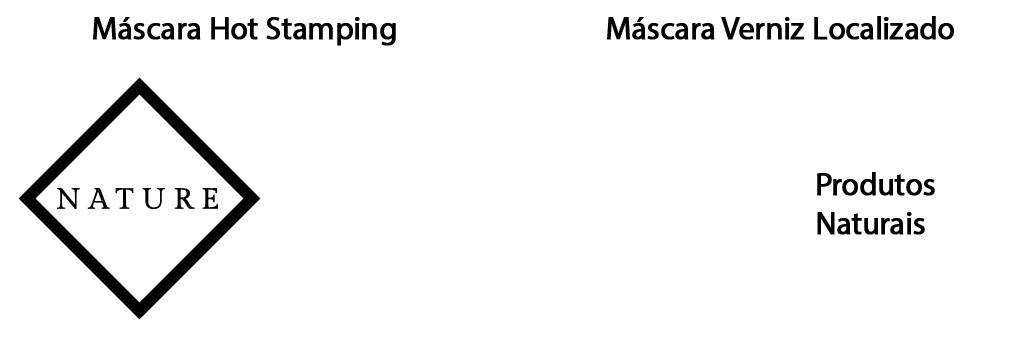 Da mesma forma como é feito com os materiais que receberão a aplicação de Verniz Localizado, com o Hot Stamping também é necessário enviar uma máscara indicando quais itens da arte devem receber o acabamento.